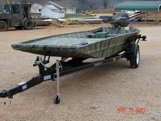 Outboard Jet / Tunnel Hull Jet drive Rock Proof Boats 17 ft / .190 one-piece tempered aluminum bottom, double all welded hull, john-boat style rounded front (Mod-V ... Retrieve Full Source